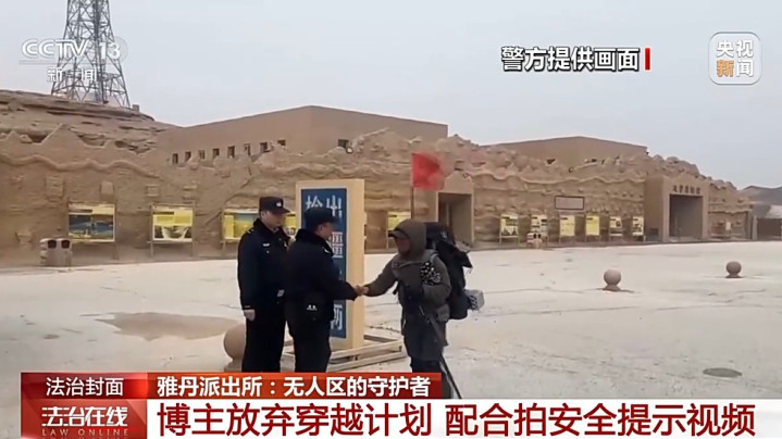 在看到派出所所长徐海瑞的留言后,这位视频博主与雅丹派出所主动取得了联系,此时他还没有走进罗布泊无人区的深处,在派出所民警的耐心劝导下,这位博主决定放弃这次穿越计划,并配合派出所民警拍下了这段安全提示视频。