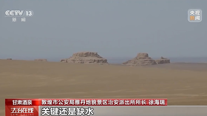 敦煌市公安局雅丹地貌景区治安派出所所长徐海瑞:气候条件非常恶劣,早晚的温差大,夏季高温,冬季寒冷,关键还是缺水,没有生存能源的补给,也没有正常的通信,即遇险之后通信联络的这种信号。