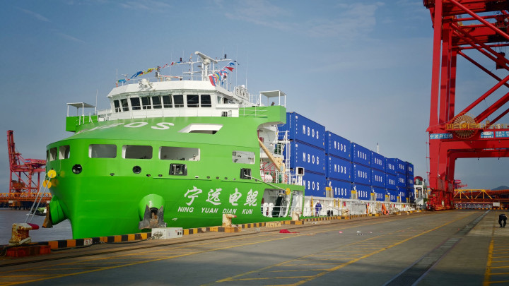 目前,宁波远洋已拥有绿色节能船舶32艘、占比57%;智能船舶19艘、占比约34%,船队低碳化、智能化升级成效显著。“宁远电鲲”轮是该公司首批两艘纯电动智能船之一,其姊妹船“宁远电鹏”轮计划于今年5月试航、6月交付。两艘船全部投运后,将在既定航线上形成规模化运营。